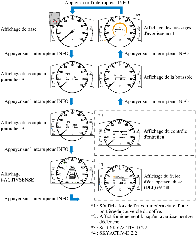 Affichage du fluide d'échappement diesel (DEF) restant et de la distance de conduite maximale (SKYACTIV-D 2.2)
