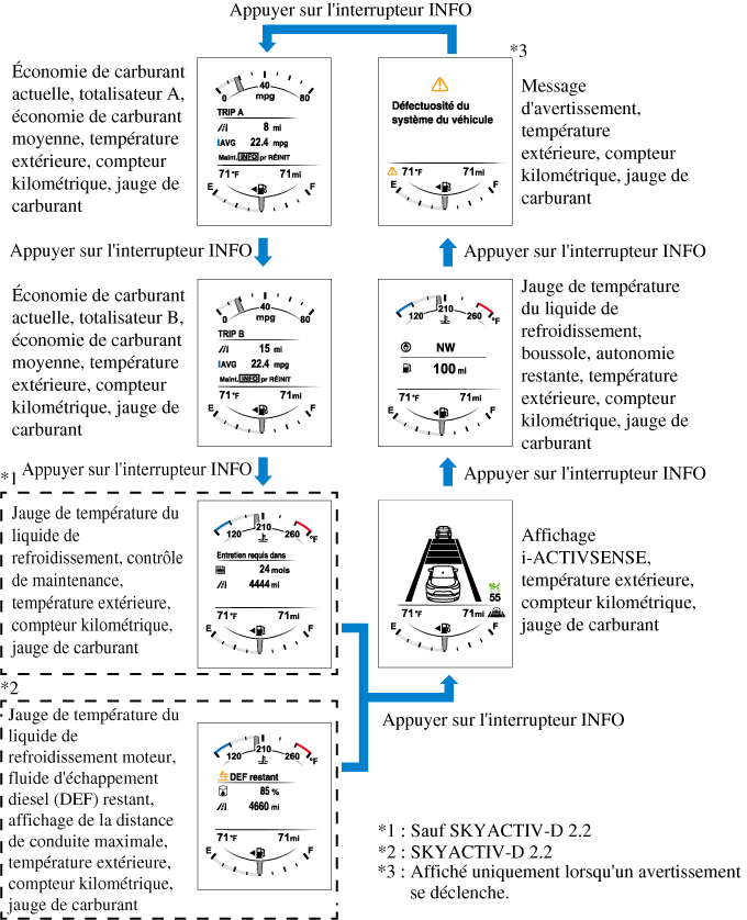 Affichage du fluide d'échappement diesel (DEF) restant et de la distance de conduite maximale (SKYACTIV-D 2.2)