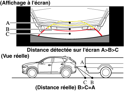 Lorsque l'arrière du véhicule est abaissé, l'objet affiché à l'écran apparaît plus loin qu'il ne l'est en réalité.