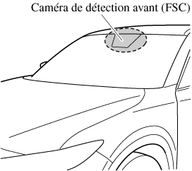 La caméra de détection avant (FSC) est installée sur le pare-brise. Consulter un concessionnaire agréé Mazda pour la réparation et le remplacement de pare-brise.