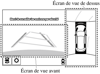 Affiche une image de la zone autour du véhicule et de l'avant du véhicule.