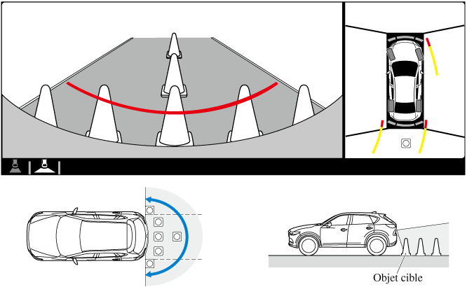 • Les obstructions affichées dans la vue avant peuvent ne pas s'afficher sur l'écran de vue de dessus.