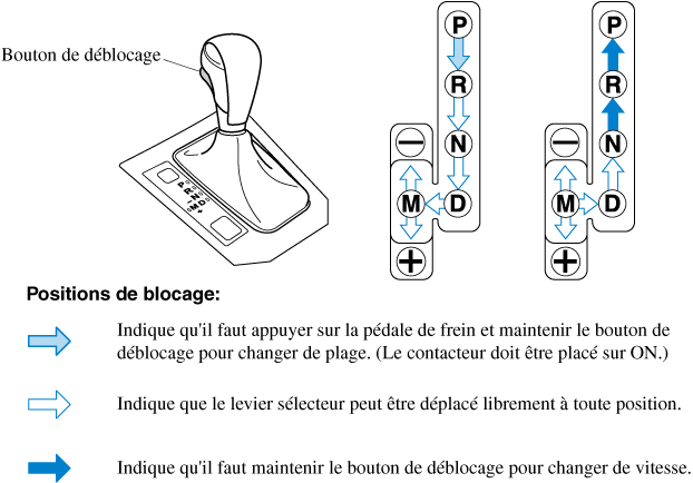 La Sport AT possède une option que ne possède pas la boîte de vitesses automatique traditionnelle qui donne au conducteur l'option de pouvoir choisir lui-même chaque rapport au lieu de laisser entièrement le choix du changement de vitesses à la boîte de vitesses. Même si l'on a l'intention d'utiliser les fonctions de boîte de vitesses automatique comme boîte automatique traditionnelle, il faut aussi bien être conscient que l'on peut passer par mégarde en mode de changement de vitesses manuel et qu'un rapport inadéquat pourra alors être conservé lorsque la vitesse du véhicule augmente. Si l'on remarque que le régime du moteur augmente ou que le moteur s'emballe, vérifier si l'on n'est pas passé par mégarde en mode de sélection manuelle des rapports (Rechercher).