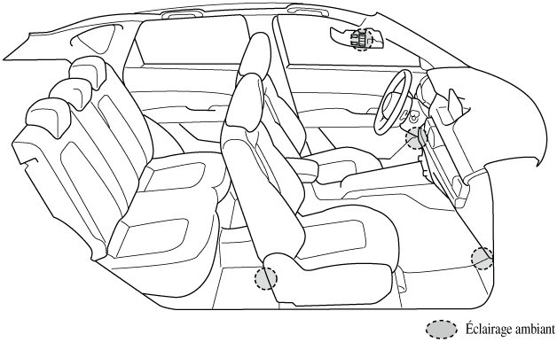 Un éclairage ambiant baisse en intensité lorsque les feux de stationnement ou les phares sont allumés.
