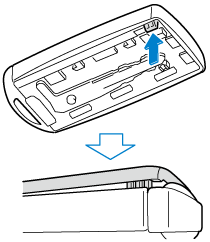 Insérer une pile neuve dans la télécommande en orientant le pôle positif vers le haut.