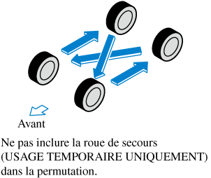 Il est dangereux d'utiliser un pneu comportant une usure irrégulière. Pour égaliser l'usure des pneus afin de maintenir de bonnes performances de conduite et de freinage, permuter les pneus tous les 12.000 km (7.500 milles). Cependant Mazda recommande de permuter les pneus tous les 8.000 km (5.000 milles) pour aider à augmenter leur longévité et distribuer l'usure de manière plus uniforme.