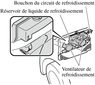 Si le ventilateur de refroidissement ne fonctionne pas lorsque le moteur tourne, la température du moteur augmentera. Arrêter le moteur et faire appel à un concessionnaire agréé Mazda.
