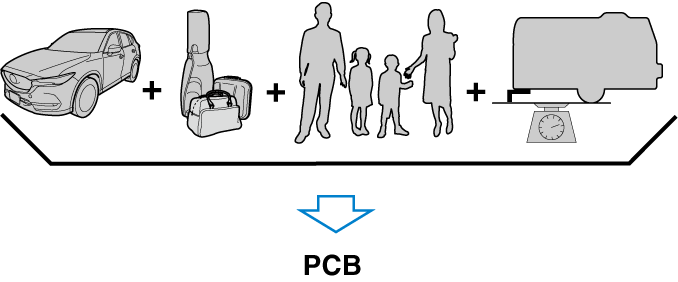 PCB (poids combiné brut) est le poids du véhicule chargé (PBV) plus le poids de la remorque complètement chargée.