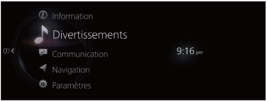 S'il y a du contenu en cours de lecture, sélectionner “Divertissements” pour que le contenu soit affiché sur l'écran de lecture.
