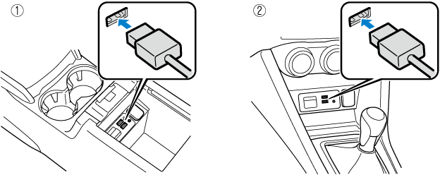 • Ne pas connecter un lecteur de carte SD ou un concentrateur USB au port USB. La lecture de la musique écrite sur la carte n'est pas prise en charge. Le système de navigation peut également devenir inutilisable. De plus, ne pas connecter une souris ou un clavier.