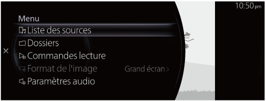 Pour des raisons de sécurité, les images ne sont pas affichées et seul l'audio est lu pendant la conduite, et certaines fonctions sont limitées.