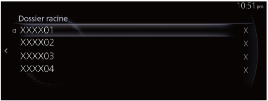 Affiche la liste des dossiers dans lesquels vous pouvez sélectionner la vidéo que vous voulez lire. Pour la méthode de sélection, se référer à Sélectionner des vidéos dans un dossier. S'il n'y a pas de dossier, l'écran de sélection de dossier est omis et passe à l'écran de sélection de fichiers.