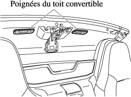 Pour élever le toit convertible depuis l'intérieur du véhicule, utiliser les poignées du toit convertible.