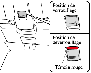 Si le témoin rouge s'allume sur le bouton de déblocage, le toit convertible n'est pas verrouillé. Après avoir verrouillé le toit convertible, s'assurer que le témoin rouge soit bien éteint.