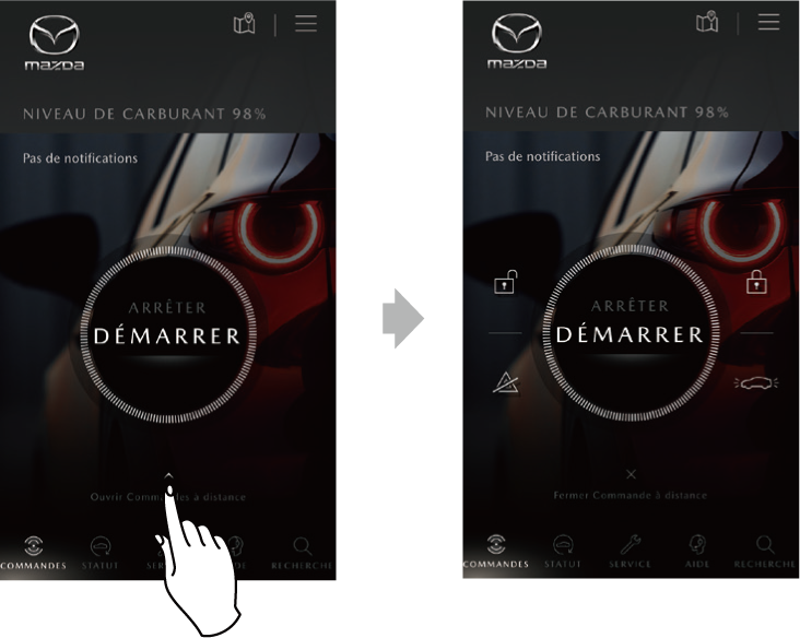 Utilisation des menus de l'application MyMazda/BOÎTE DE RÉCEPTION