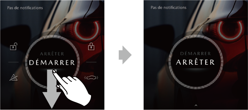 Faites défiler le bouton [DÉMARRER] au centre de l'écran pour afficher [ARRÊTER], puis maintenez [ARRÊTER]enfoncé.