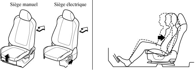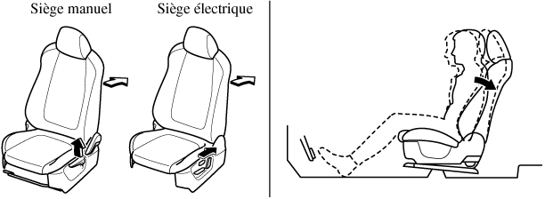 Les réglages de la position de conduite recommandés par Mazda sont effectués selon les procédures suivantes.