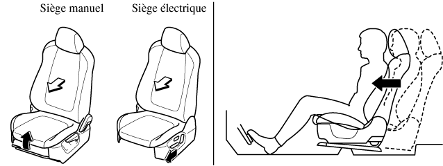 Dans le cas du siège manuel, élever la hauteur d'assise déplace le siège vers l'avant. Régler à nouveau le siège en avant ou en arrière.