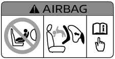 Les véhicules équipés d'un coussin d'air côté passager avant porte l'étiquette d'avertissement suivante. L'étiquette avertit contre l'utilisation de dispositifs de sécurité pour enfants faisant face vers l'arrière sur le siège avant en tout temps.