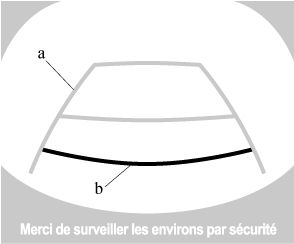 Les lignes de guidage sur l'écran sont des lignes fixes. Elles ne sont pas synchronisées avec la rotation du volant par le conducteur. Faire toujours bien attention, et vérifier la zone située à l'arrière du véhicule et la zone environnante directement avec les yeux lorsqu'on recule.