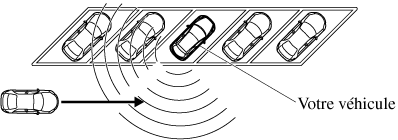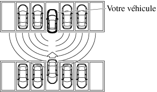 La zone de détection du capteur radar (arrière) est obstruée par un mur voisin ou un véhicule en stationnement. (Faire marche arrière avec le véhicule jusqu'à une position où la zone de détection du capteur radar n'est plus obstruée.)