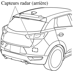 Pour les réparations ou le remplacement des capteurs radar (arrière), ou des réparations au pare-chocs, du travail de peinture et le remplacement à proximité des capteurs radar, consulter un concessionnaire agréé Mazda.