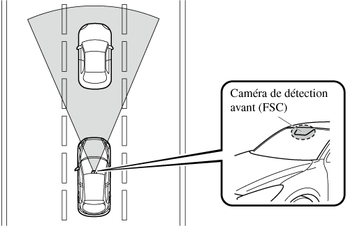 L'Advanced SCBS alerte le conducteur d'un risque de collision par des avertissements visuels et sonores lorsque la caméra de détection avant (FSC) détecte un véhicule qui précède ou un piéton et détermine qu'une collision est inévitable, dès lors que le véhicule roule à une vitesse d'approximativement 4 à 80 km/h (2 à 50 mi/h) si l'objet est un véhicule au-devant et 10 à 80 km/h (6,2 à 50 mi/h) si l'objet est un piéton. De plus, le système réduit les dommages en cas de collision en actionnant la commande de frein (freins Advanced SCBS) lorsqu'il détermine qu'une collision est inévitable. De plus, lorsque le conducteur appuie sur la pédale de frein, les freins s'appliquent fermement et rapidement pour assister. (Assistance des freins (assistance des freins Advanced SCBS))