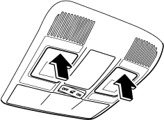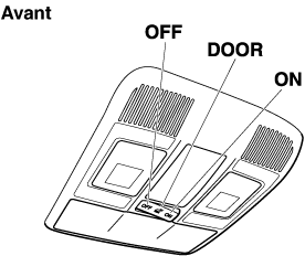 Lorsque l'interrupteur d'éclairage au pavillon est dans la position de portière ou la position désactivée, appuyer sur la lentille pour allumer les lampes de lecture, puis rappuyer sur la lentille pour l'éteindre.