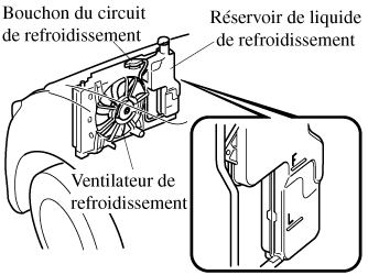 Si le réservoir de liquide de refroidissement est vide ou qu'il doit être fréquemment rempli de nouveau liquide de refroidissement, consulter un concessionnaire agréé Mazda.