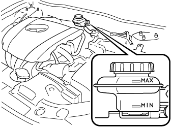Vérifier périodiquement le niveau du liquide dans le réservoir. Le niveau doit être gardé entre les repères MAX et MIN.