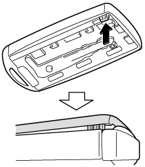 Retirez le couvercle inférieur tout en faisant glisser le bouton dans le sens de la flèche.