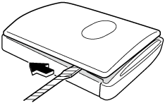 Insérer un tournevis à tête plate enroulé de ruban dans l'espace et le glisser dans le sens de la flèche.