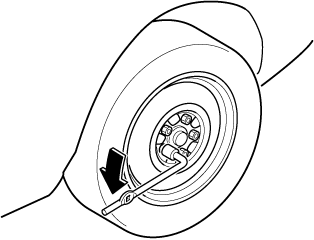 Si le véhicule est équipé d'un enjoliveur de roue, le retirer l'enjoliveur de roue à l'aide de l'extrémité en biseau du levier de cric.