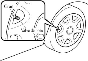Aligner le cran de l'enjoliveur avec la tige de soupape d'air, lors de son installation.