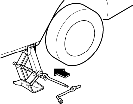 Tourner la manivelle du cric dans le sens des aiguilles d'une montre pour soulever le véhicule juste assez pour que la roue de secours puisse être installée. Avant de retirer les écrous de roue s'assurer que le véhicule est bien stable et ne risque pas de glisser ou de se déplacer.