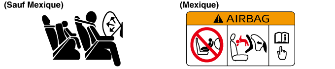 Cette étiquette bien visible a été affichée pour avertir contre l'utilisation un système de dispositif de sécurité pour enfants faisant face vers l'arrière sur le siège passager avant.