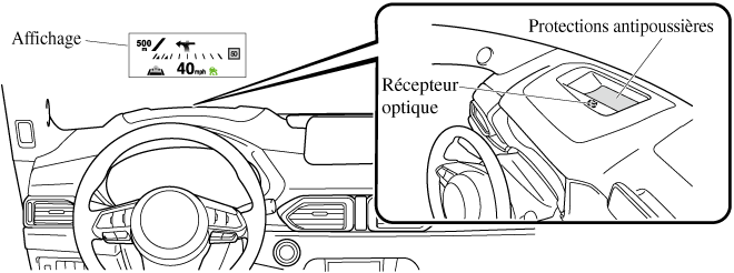 Se référer à Régulateur de vitesse à radar Mazda avec fonction Stop & Go (MRCC avec fonction Stop & Go) (Rechercher).