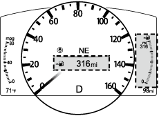 • La distance restante est la distance approximative restante durant laquelle le véhicule peut être conduit jusqu'à ce que toutes les marques de l'aiguille dans la jauge à carburant indiquant le carburant restant disparaît.