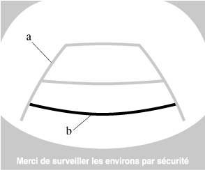 Les lignes de guidage sur l'écran sont des lignes fixes. Elles ne sont pas synchronisées avec la rotation du volant par le conducteur. Faire toujours bien attention, et vérifier la zone située à l'arrière du véhicule et la zone environnante directement avec les yeux lorsqu'on recule.