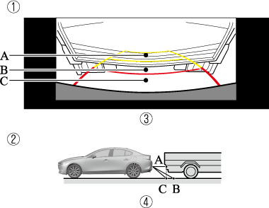 Lorsque l'arrière du véhicule est abaissé, l'objet affiché à l'écran apparaît plus loin qu'il ne l'est en réalité.