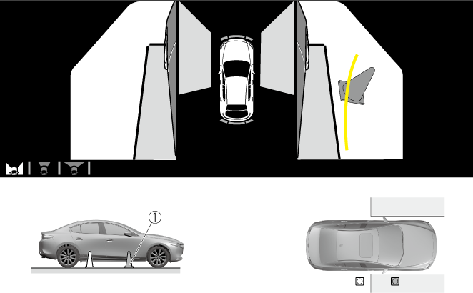 La portée de détection du capteur de stationnement est limitée. Par exemple, les obstructions se rapprochant sur le côté et les objets de faible hauteur peuvent ne pas être détectés. Toujours vérifier visuellement la sécurité du véhicule lors de la conduite.