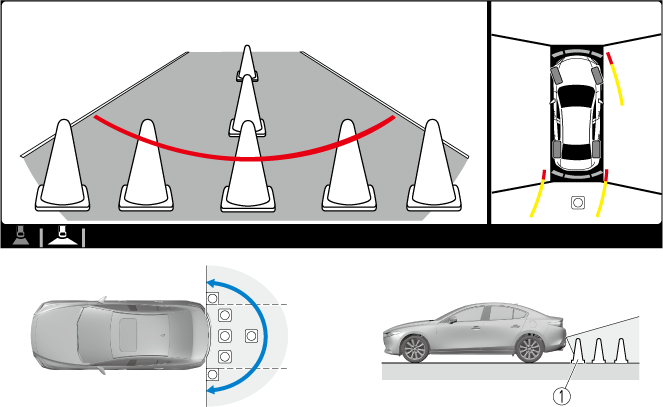 Les obstructions affichées dans la vue avant peuvent ne pas s'afficher sur l'écran de vue de dessus.