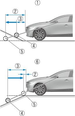 Il peut y avoir une certaine marge d'erreur entre la surface de la route apparaissant à l'écran et la surface réelle de la route. Une marge d'erreur dans la distance perçue pourrait conduire à un accident, soyez donc conscient des conditions suivantes qui peuvent plus facilement produire des erreurs dans la distance perçue.