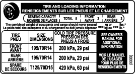 L'étiquette des pneus mentionne la pression de gonflage des pneus par taille de pneu et d'autres informations importantes; elle se trouve sur le montant B du côté conducteur ou sur le bord du cadre de la portière du conducteur.