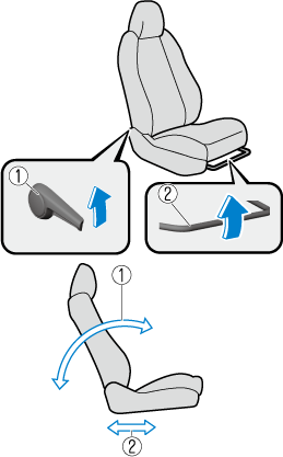 Pour déplacer un des sièges vers l'avant ou vers l'arrière, tirer le levier vers le haut et faire coulisser le siège à la position désirée et relâcher le levier.