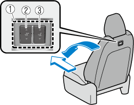 Le dossier du siège se replie vers l'avant en appuyant sur le côté supérieur de l'interrupteur d'angle, et le siège coulisse vers l'avant en appuyant sur le côté supérieur de l’interrupteur de coulissement.