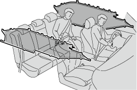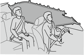 Lorsque les capteurs de choc des coussins d'air détectent un choc latéral d'une force supérieure à une force modérée, le rideau de sécurité gonflable se gonfle rapidement et aide à réduire les blessures, principalement à la tête du conducteur et des passagers latéraux avant et arrière, causées par des chocs directs avec des pièces intérieures comme une porte ou une vitre.