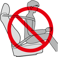 Lorsqu'un adulte ou un enfant de grande taille s'assied sur le siège du passager avant, la diminution du poids total assis sur le siège du passager avant requis pour le déploiement de coussin d'air est dangereuse. Les capteurs de poids du siège du passager avant détecteront la condition de poids total assis réduit et les coussins d'air avant et latéral, les coussins d'air pour les genoux et le système de dispositif de prétension de ceinture de sécurité du passager avant ne se déploieront pas en cas d'accident. Le passager avant n'aura pas la protection supplémentaire fournie par le coussin d'air, cela peut causer de graves blessures. La diminution du poids total assis sur le siège du passager avant peut annuler le déploiement du coussin d'air dans les conditions suivantes, par exemple: