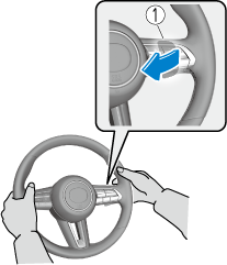 Lorsque le régulateur de vitesse et le régulateur de vitesse à radar Mazda avec fonction Stop & Go (MRCC avec fonction Stop & Go) ou l’assistance dans les embouteillages (TJA) sont en marche, il n'est pas possible de modifier le réglage des palettes au volant.