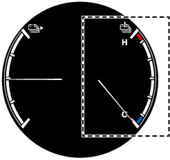 Affiche la température de la batterie haute tension. La plage bleue de la jauge indique que la température de la batterie haute tension est basse et la plage rouge indique qu'elle est élevée et que la batterie surchauffe.